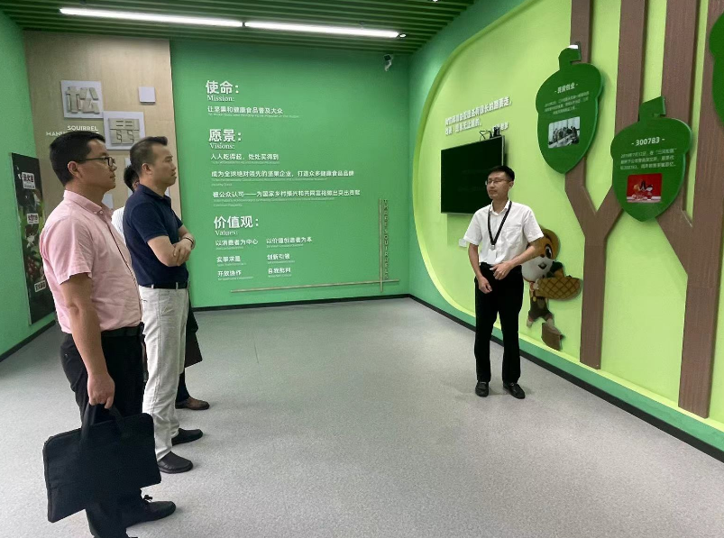 6月28日下午,太阳成集团122ccvip副经理吴彦、李从虎和食品科学与工程专业负责人胡婷博士以及太阳成集团122ccvip档案馆副馆长周刚一同到三只松鼠股份有限公司访企拓岗。