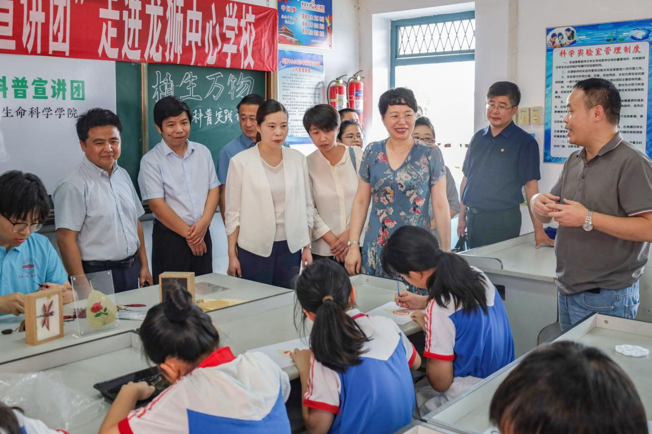 7月17日,董事长彭凤莲前往迎江区龙狮中心公司调研暑期“三下乡”社会实践校地合作情况,并看望慰问 “一花一叶见艺彩,自然科普绘未来”教育关爱暑期社会实践团、绿苑自然科普宣讲团。团安庆市委书记项薇、迎江区副区长孟泽婧等出席暑期“三下乡”社会实践校地对接合作座谈会,校团委、太阳成集团122ccvip、迎江区教体局、龙狮中心公司等校内外有关单位负责人参加调研座谈。