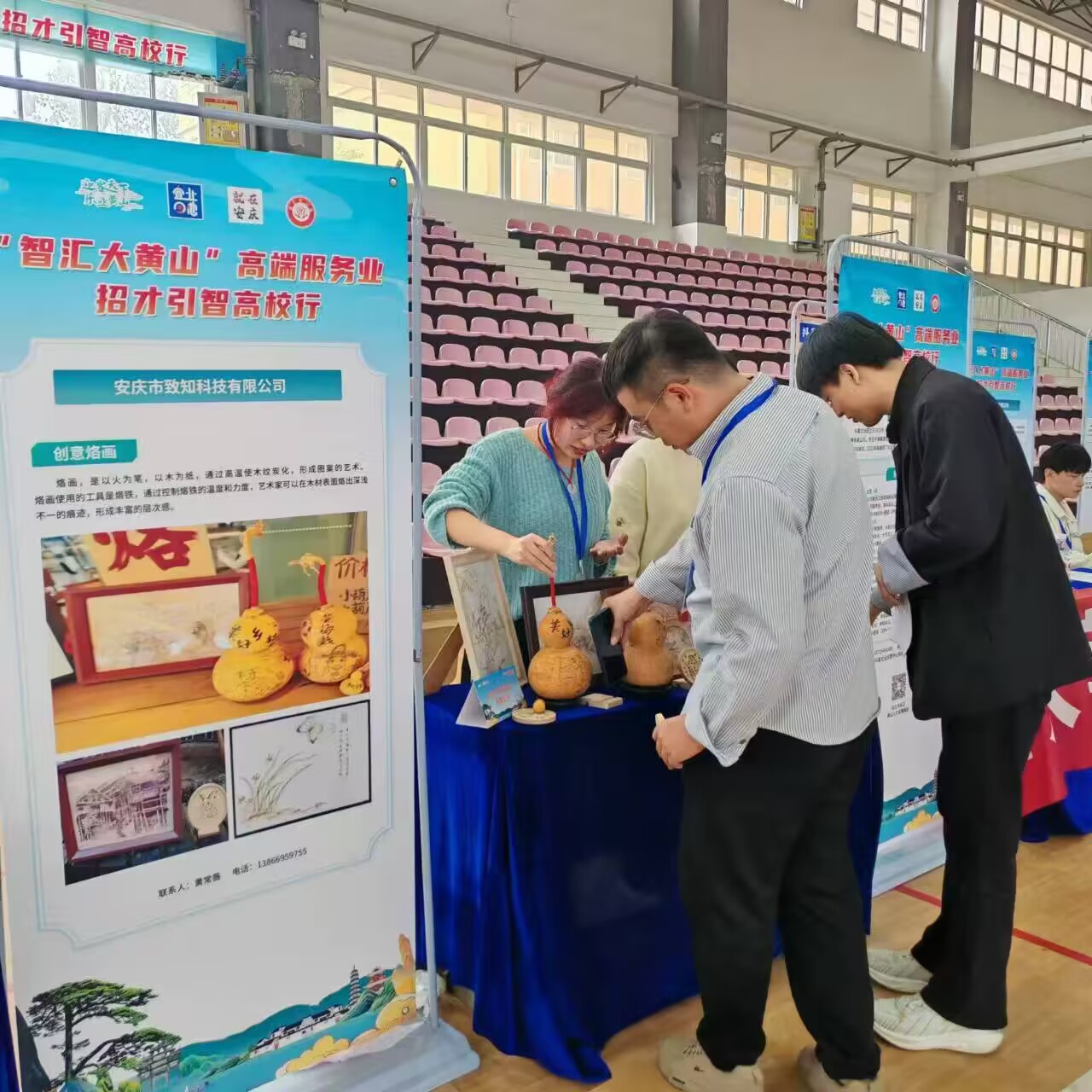 10月16日,太阳成集团122ccvip应邀参加由黄山市人力资源和社会保障局主办的“智汇大黄山”高端服务业招才引智系列活动。该院数名员工走进安徽外国语公司进行非遗烙画的科普宣传活动。他们将所学付诸实践,进行非遗烙画的科普宣传活动。