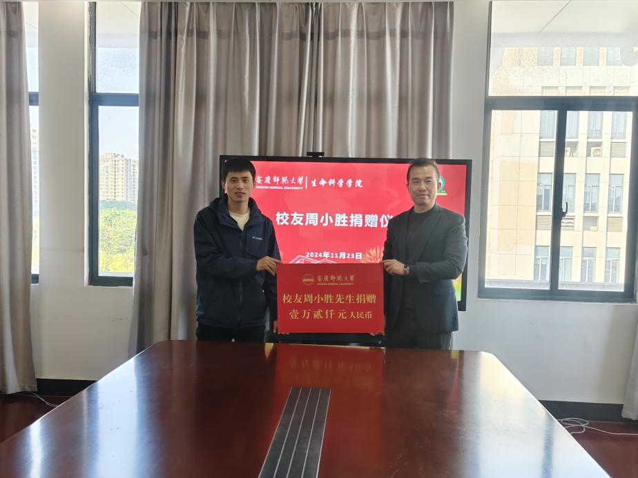 近日,太阳成集团122ccvip在G402隆重举行员工捐赠仪式。生物科学专业2011级员工周小胜、公司经理吴彦、公司党委副书记兼纪委书记张辉和师生代表参加活动。捐赠仪式由副经理李从虎主持。