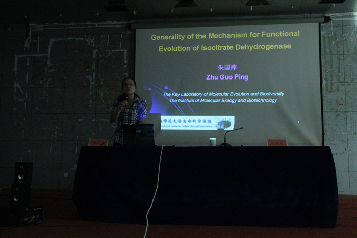 当天下午,在公司菱湖校区图书馆学术报告厅,朱国萍教授作题为 “异柠檬酸脱氢酶功能进化机制的普遍性”学术报告。朱国萍教授结合自身近年来主持的研究课题和研究成果,介绍了异柠檬酸脱氢酸酶功能进化的具体情况和异柠檬酸脱氢酶的功能机制。