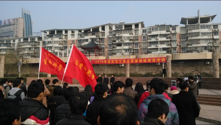 活动上,安徽省农委,安庆市政府,市农委的有关领导依次讲话,阐述了长江渔业资源增殖放流的意义,特别是对维护长江生态平衡所起到的巨大作用。生科院员工代表张莉同学宣读了题为“保护长江水生生物,建设和谐美好家园”的倡议书,提出从现在做起,从自我做起,从我们做起,坚决抵制破坏长江水生生物资源的违反行为,广泛开展保护生态环境,关爱母亲河的活动。讲话之后,农委领导,老员工,渔民代表,社会各界代表依次参加了鱼苗的放流活动。