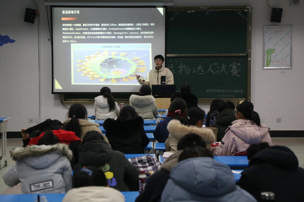 据负责人介绍,本次比赛分上、下两个场次。上半场,选手以“讲解ppt+展示模型”的方式进行比拼;下半场,选手随机抽取数字后,选择对应主题进行即兴演讲。徐启凤、吕丹、宋靖三位评委根据选手综合表现进行现场打分,评选出一、二、三等奖。最终,生物科学专业2020(5)班王婉婷和李正一组获得了一等奖,斩获比赛冠军。