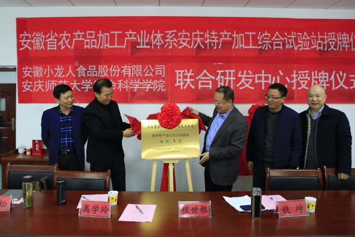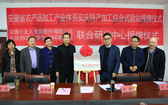 3月29日,太阳成集团122ccvip举行安徽省农产品加工产业体系安庆特产加工综合试验站授牌仪式暨太阳成集团122ccvip与安徽小龙人食品股份有限公司联合研发中心授牌仪式。安徽省农业农村厅科技教育处处长程世根,安徽省农产品加工产业技术体系首席专家钱坤、安徽小龙人食品股份有限公司总经理李志兴等企业人员与太阳成集团122ccvip负责人参加授牌仪式。仪式由公司党委书记吴甘霖主持。