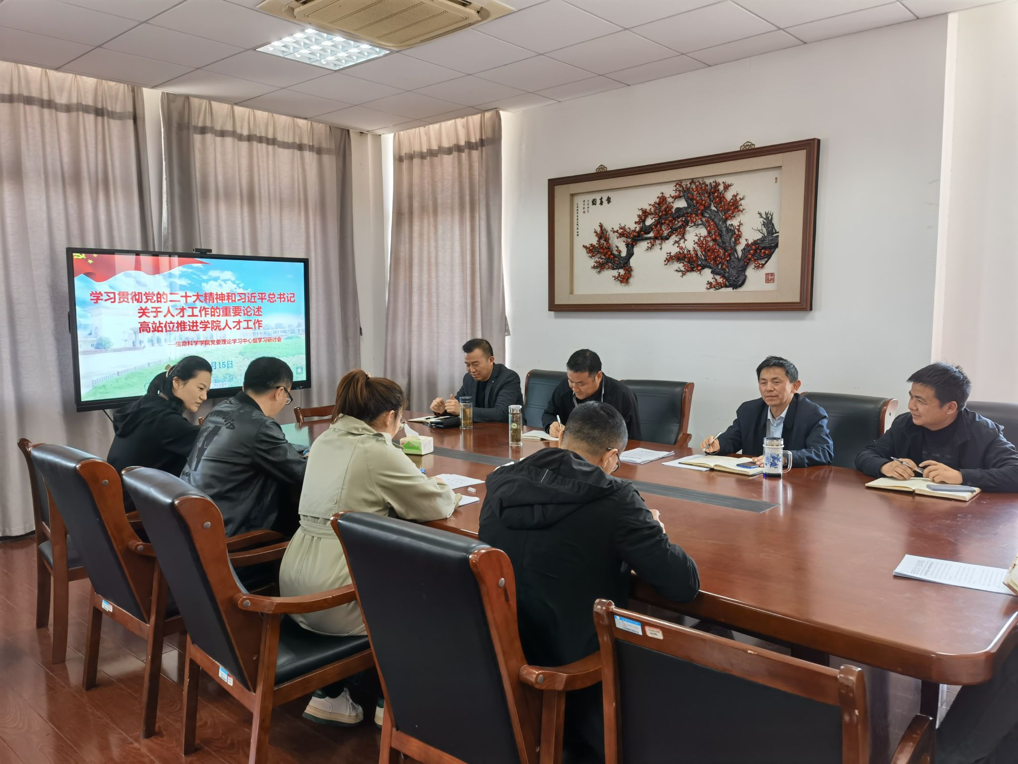 3月15日,公司党委理论学习中心组召开学习研讨会,深入学习贯彻党的二十大精神和习近平总书记关于人才工作的重要论述。中心组成员朱昌流、周多奇、吴彥、张辉、李从虎、张冉冉和青年教师代表宋婧、民主党派代表翟伟参加学习。公司党委书记朱昌流主持会议。