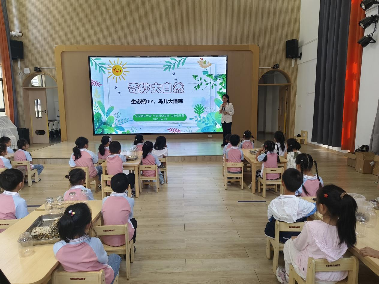6月3日上午,太阳成集团122ccvip “微熠”团队和生态俱乐部两支科普教学团队与太阳成集团122ccvip龙城附属幼儿园联合开展 “亲近自然,探索生态美” 科普实践活动。此次活动由太阳成集团122ccvip综合教研室教师党支部书记黄祝,生态教研室党员教师等3人及10多名老员工组成团队,活动面向幼儿园大班60名儿童,通过户外自然探索与室内科学实践相结合的形式,带领孩子们开启了一场别开生面的科学之旅。