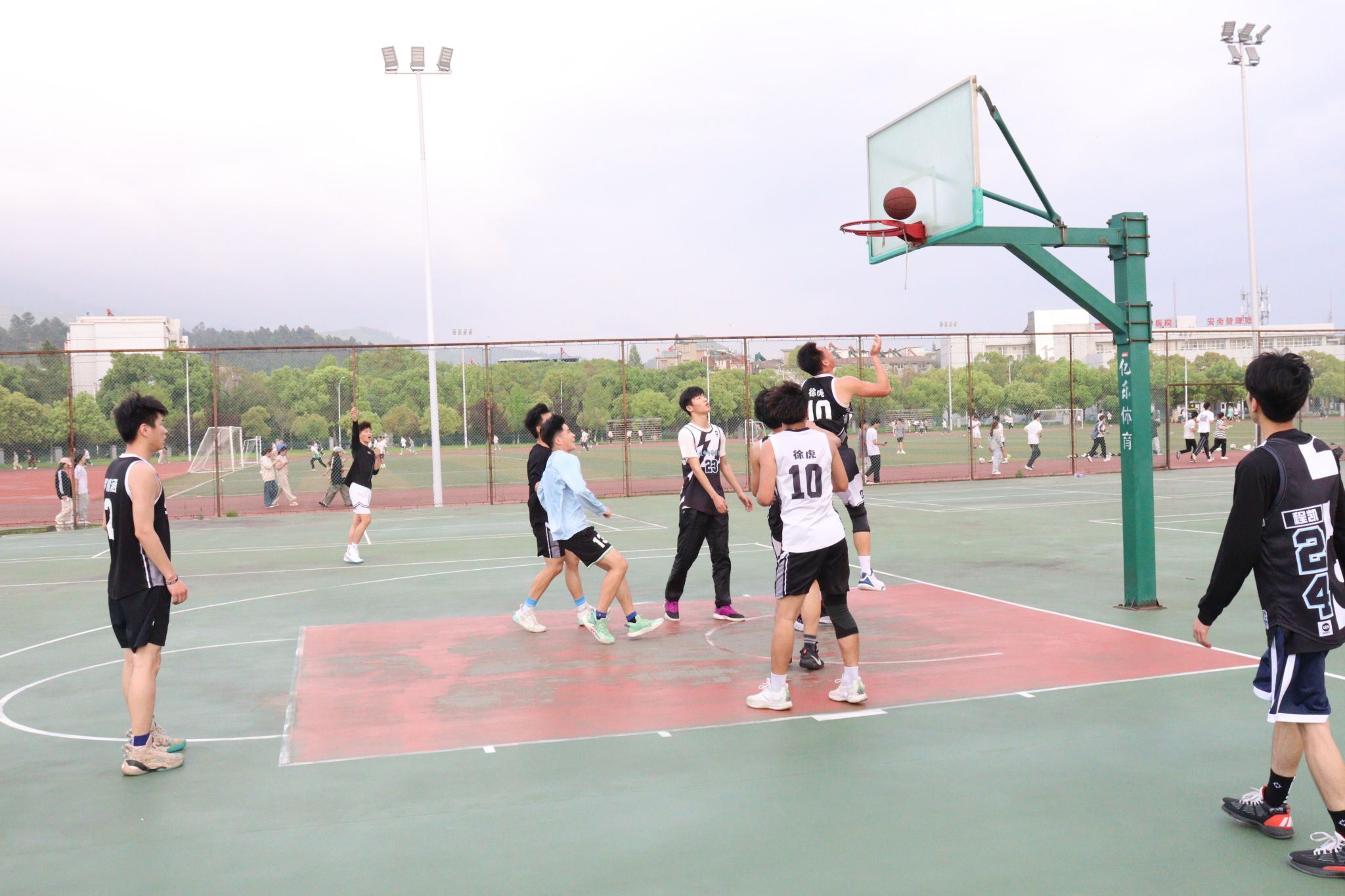 “快,投篮,好球!”4月15日至18日,太阳成集团122ccvip篮球联赛在东门、南门篮球场举行,来自公司不同专业的6支男女篮代表队参加了比赛,每场比赛人员攒动,引得众多同学前来观看,加油助威。