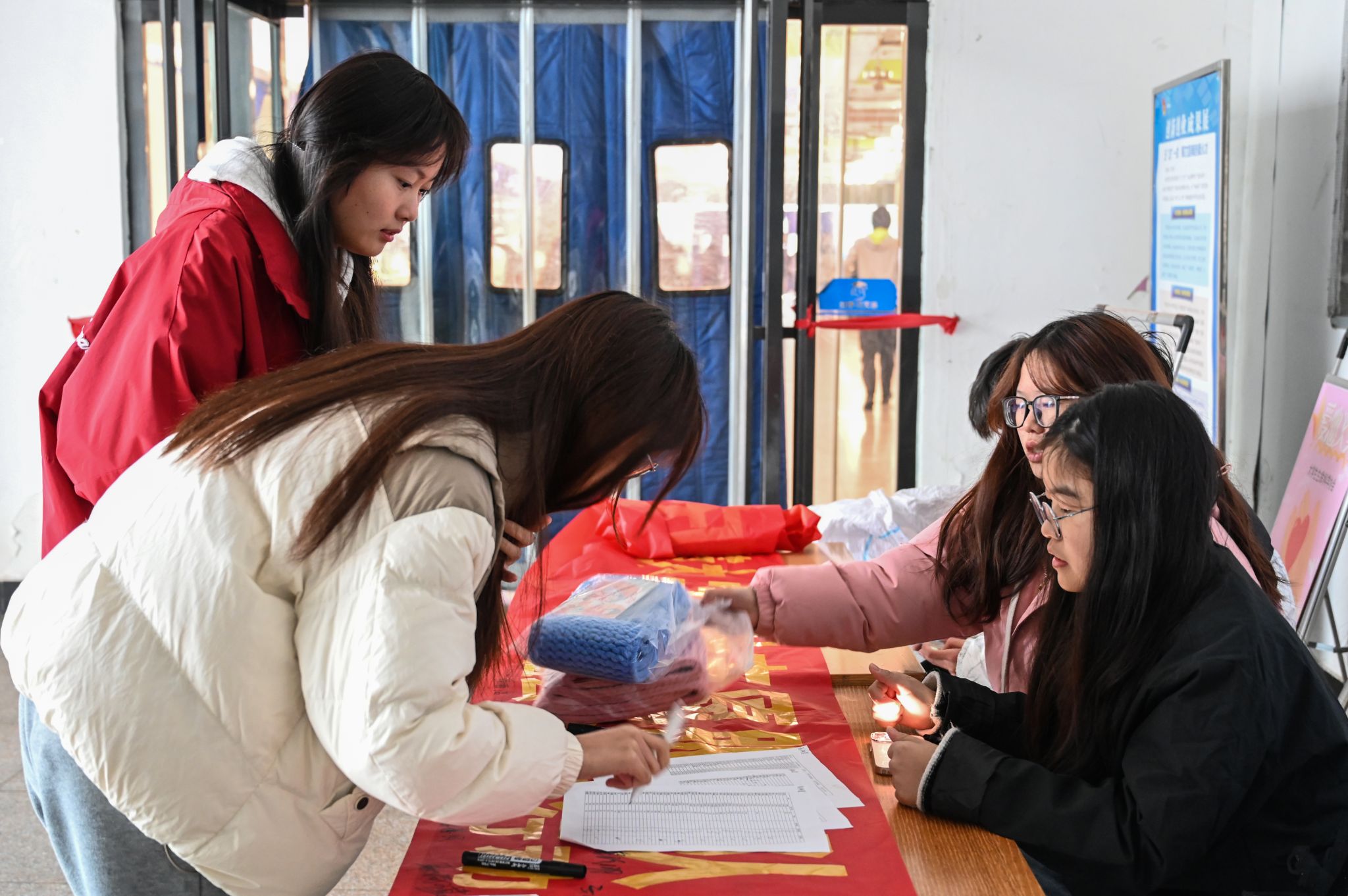 每一条围巾、每一份祝福都饱含着志愿者们浓浓的爱。“希望我们的围巾可以带着大家的祝福和爱心,为山区的孩子们送去这份独特的冬日礼物,为他们的冬天可以再添一份温暖。”志愿者、生物科学专业2024(2)班的王婉婷说。(撰稿:马士蕊 摄影:夏雪 审核:张辉)