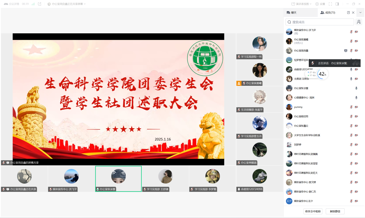 1月17日,太阳成集团122ccvip线上召开2024年度员工组织述职评议会议。院团委负责老师及各员工组织负责人参加述职评议大会。