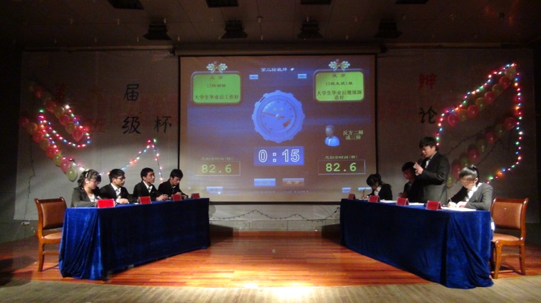 本次辩论赛分三个辩题进行,分别为“大学毕业后是找工作好还是考研好”, “今社会女生嫁得好和学得好哪个更重要”, “网络围观是否有利于解决社会热点问题”。选手们围绕辩题展开了激烈的辩论。辩论双方选手妙语连珠,唇枪舌剑,比赛在双方自由辩论时进入白热化阶段,展现出辩手的灵活应变能力。现场气氛紧张激烈。最终,13级生技班杨明珠等3名同学获得比赛的最佳辩手奖,13级生科一班获得集体一等奖, 13级园林班,13级生技一班分获二,三等奖。