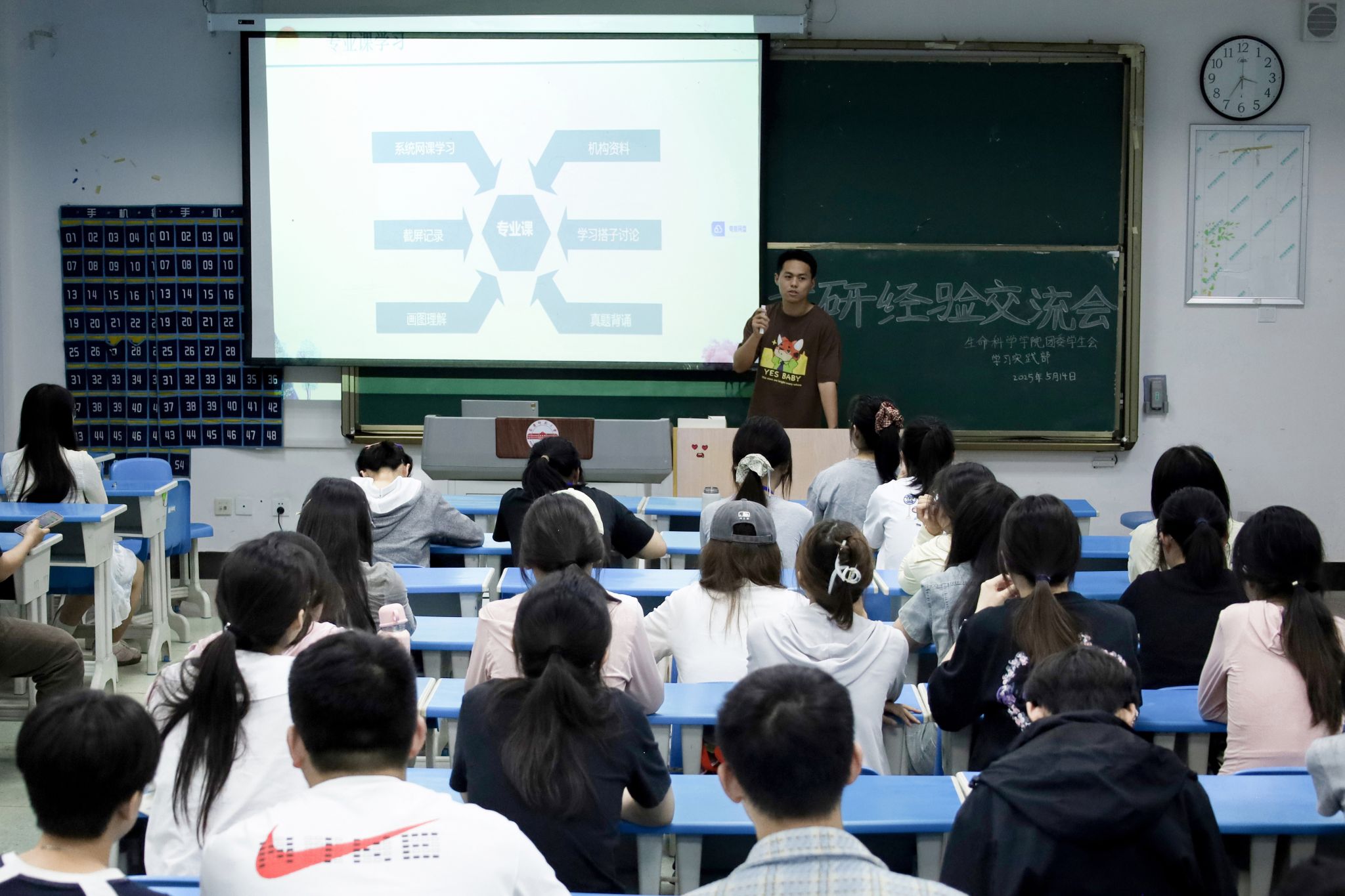掌握学习方法、挑选资料选择、调适备考心态……5月14日,为助力更多员工科学备考,太阳成集团122ccvip在G101室举办考研经验交流会,邀请了三位2021届考研高分员工分享经验,吸引了公司各年级50余名员工参加。