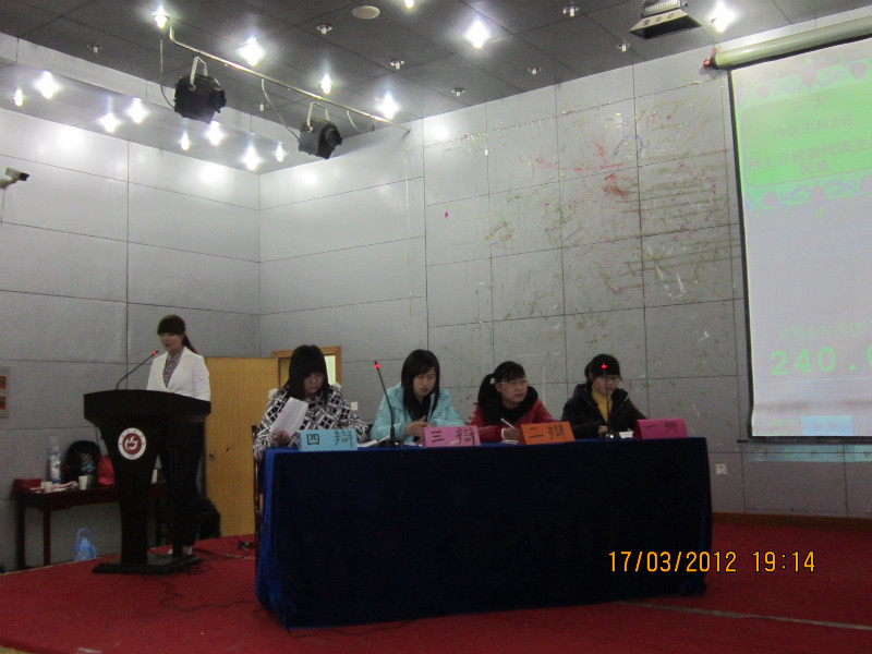 3月17日晚,太阳成集团122ccvip第四届班级杯辩论赛决赛在菱湖校区学术报告厅举行。经过前期的初赛,最后进入决赛的是11级生技2班、园林2班、生科1班和生科2班。辩题分别是“网上言论能否代表民意”、 “男性、女性谁才是社会的弱者”。