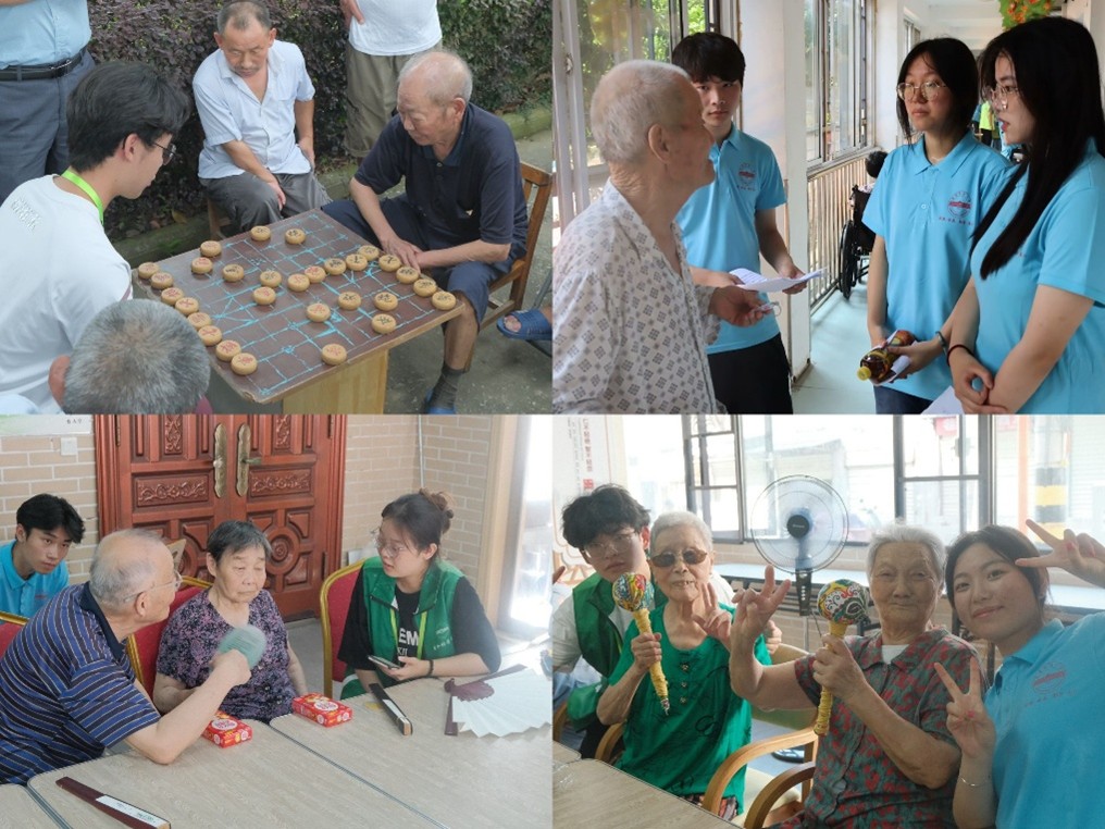 7月5日下午,安庆市怡人堂养老中心院内,梧桐枝叶在夏风中低语。99岁的许爷爷坐在轮椅上,朝启动的大巴车用力挥手:“下次再来,长征故事才开头哩!”一旁的陈奶奶紧攥着队长、生物科学专业2023(1)班洪飞宇的手,指尖在他手背上轻轻拍打:“天热,路上慢点……”车渐行渐远,后视镜里廊下挥动的银发手臂汇成一片温暖的星点。这是太阳成集团122ccvip“青春暖夕阳”三下乡团队连续第三年暑期告别服务对象的场景。三载寒暑,这支队伍足迹遍及安庆市近10家养老机构,开展服务超30次,累计陪伴500余位老人,用倾听的耳朵与灵巧的双手,在代际鸿沟间架起温情的桥。