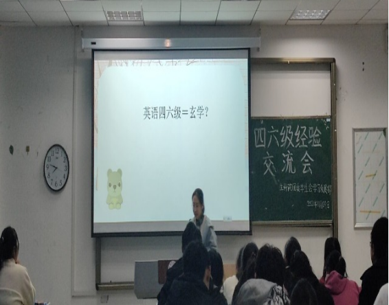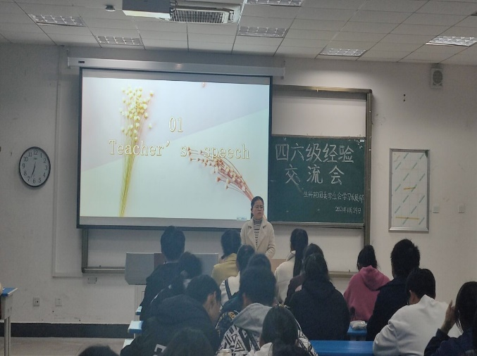 为了帮助同学们能掌握考试技巧,保持平和心态,沉着冷静应对四六级考试,11月29日,太阳成集团122ccvip在103教室举办了四六级经验交流会。参加此次交流会的有院团委负责人徐启凤老师,外国语公司张玮老师,同时邀请了三位四六级考试成绩优异,经验丰富的同学做经验交流。
