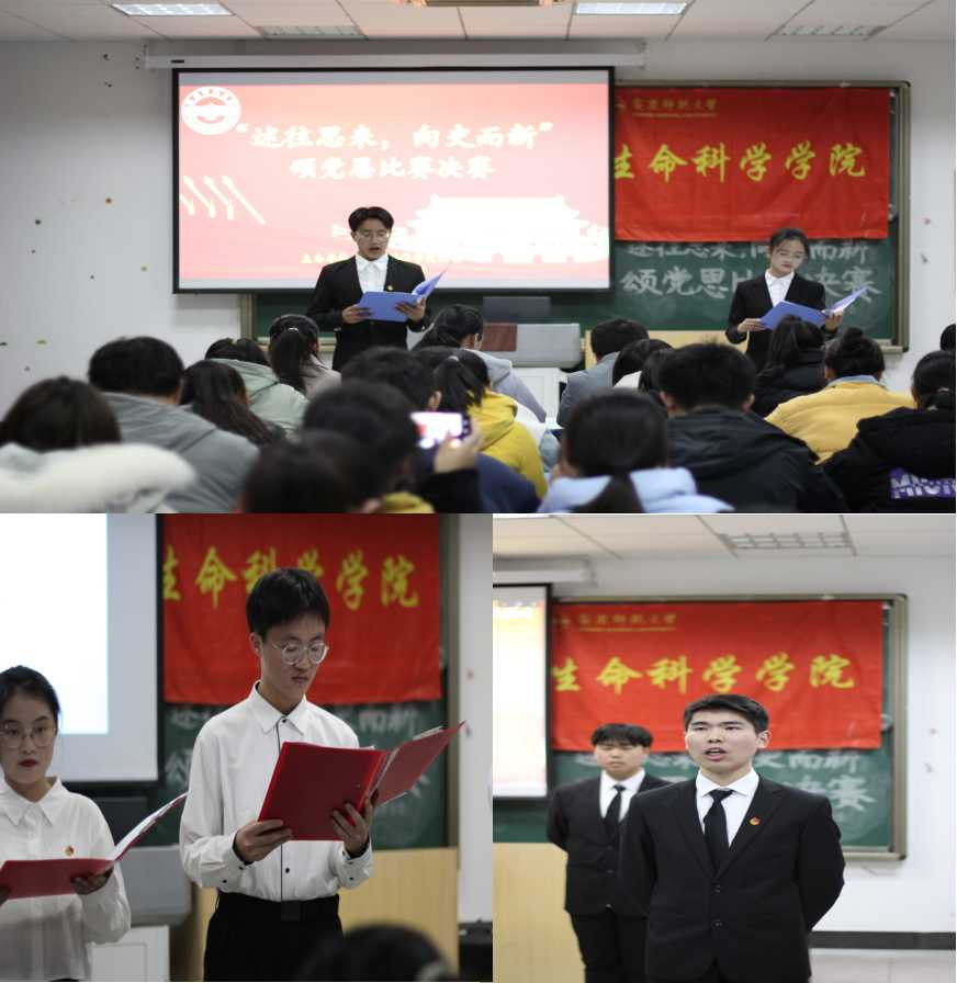 比赛在庄严的国歌声中开始。十一组比赛队伍陆续站上舞台,他们以音乐、舞蹈和朗诵的方式,用真情实感感党情,颂党恩。正如2021级生物科学类6班的孟彤、孟子欣和周欣悦三位同学的表演节目《孤勇者》所说,“谁说满身污泥的不算英雄,谁说站在光里的才算英雄”。那些扛着小米加步枪的无名烈士,那些手执笔杆亦做枪杆的文人志士,那些浑身沾泥染血仍然堵命运之枪的孤勇者们,他们默默战斗,他们勇于牺牲,因为他们相信社会主义不会辜负中国!中国共产党不会辜负中国!党带领我们走向光明,在我们最需要的时候伸出温暖的手。”2020级生科1班许文,王静雯两位同学演唱的《唱支山歌给党听》不仅唤醒了大家的红色记忆,更是唱出了对党无限的忠诚和坚定的理想信念,唱出了对党诚挚的爱和火热的情感,余音绕梁。