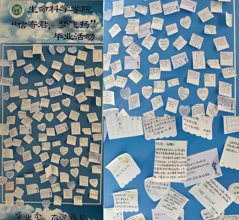 “哇塞,学弟学妹写的都好棒啊!”毕业生之一生物科学专业2018(1)班的程洁在收到来自学弟学妹的祝福后十分开心,在今年她成功考研“上岸”。程洁希望勉励员工们不忘初心,努力学好专业知识,今后在自己喜欢的领域闪闪发光。“通过这个活动,可以让我们与学弟学妹们多多交流,为他们在考研或者就业方面提供一些经验帮助。”