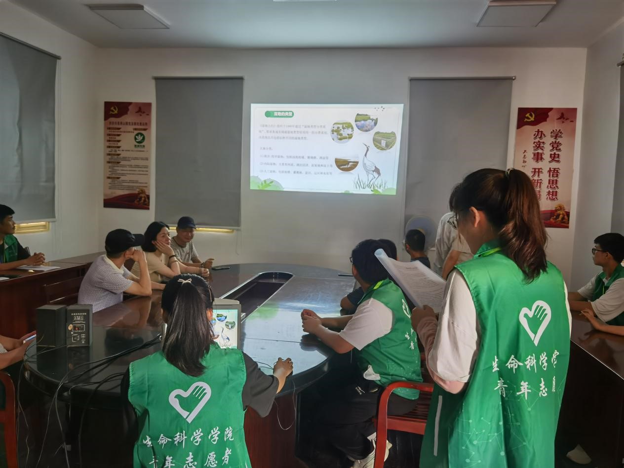 当天下午,团队成员分组走访附近居民,开展《湿地保护法》宣传与问卷调查。据悉,自保护中心成立以来,就一直致力于共管共建、科普宣教、生物多样性保护等方面工作。在这次实践调研中,给实践团成员留下深刻印象的是当地居民们较高的湿地保护意识,还有菜子湖人与鸟儿和谐共存的优美生态环境。