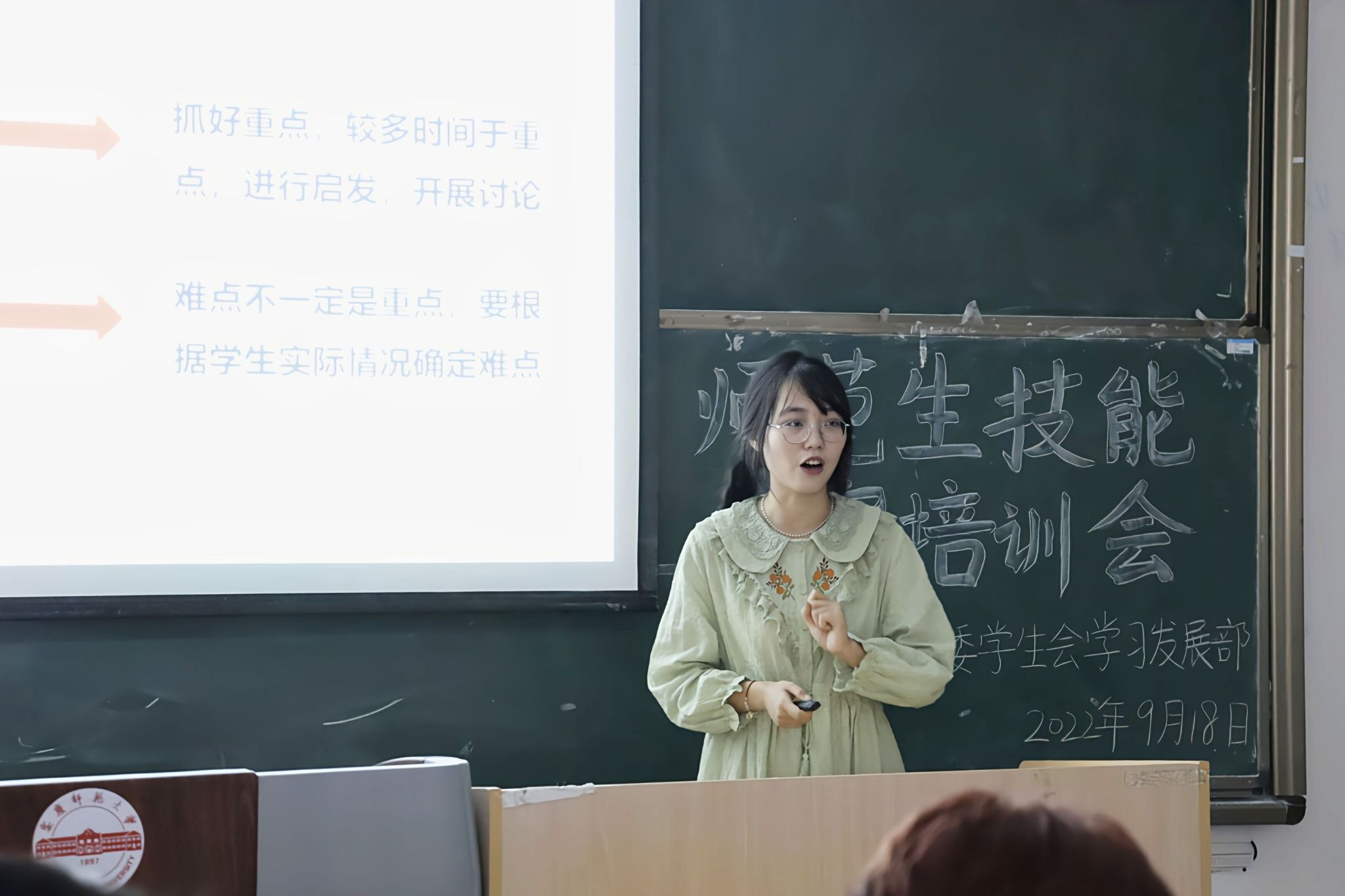 “三尺讲台立定方圆”。本次培训会对参加师范生技能大赛的员工进行有针对性、专业性的指导,同时也加强了师范生对教学技能的重视和体会,引导了师范生自觉、自主进行师范生基本技能训练。( 撰稿、摄影:李文慧 审核:张辉)