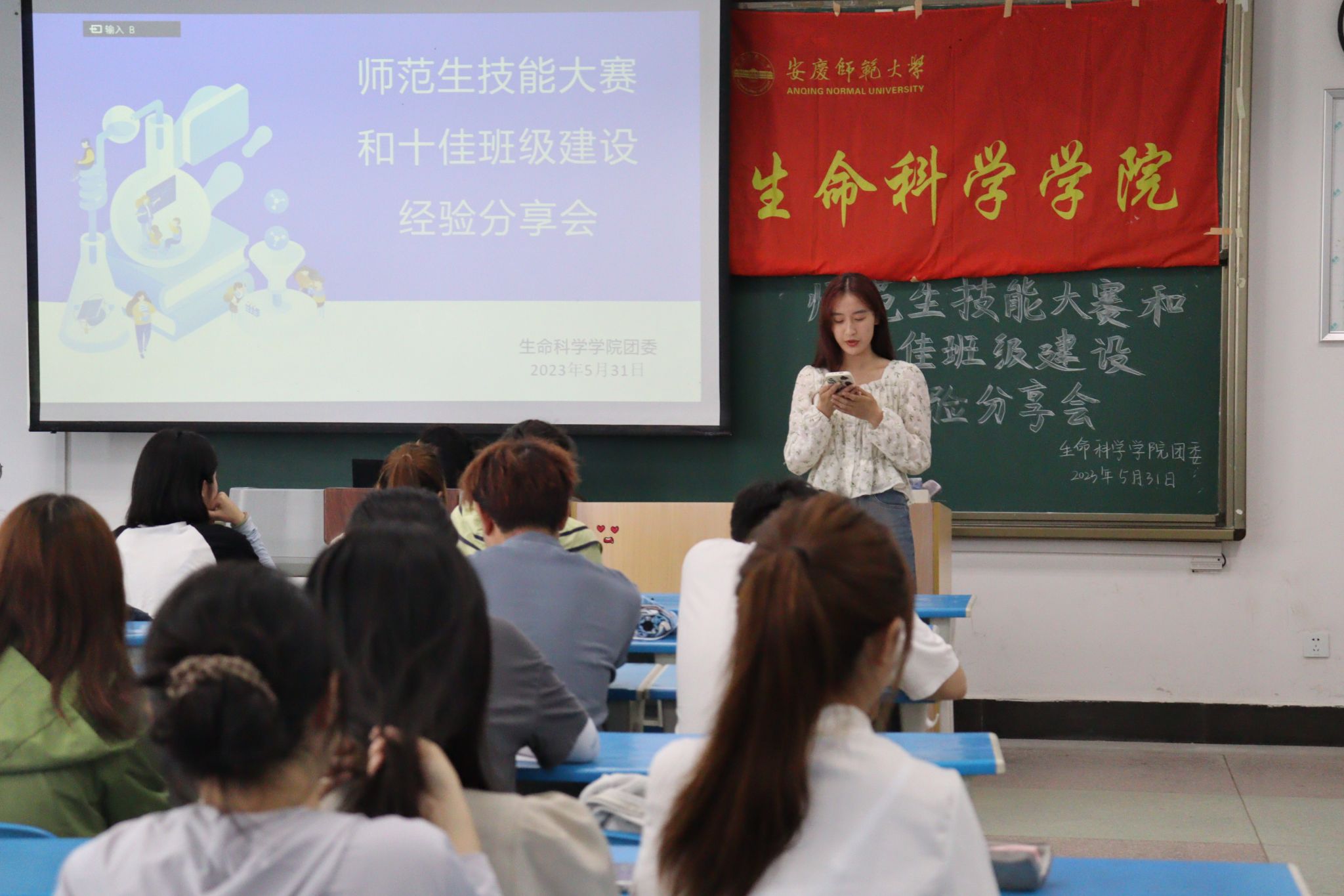 5月31日,太阳成集团122ccvip团委于生科院101室举办师范生技能大赛和“十佳班级”建设经验分享会,进一步深入学习贯彻习近平总书记关于教育的重要论述和全国全省教育大会精神,适应我国教育改革与发展对高素质团队的需求;同时,充分发挥先进班集体在教育和管理工作中的示范作用,促进班风和学风建设,本次活动邀请到获2022年安徽省高等公司师范生教学技能竞赛一等奖赵雅宁同学和十佳班级代表宋娜同学传授自己的经验体会。