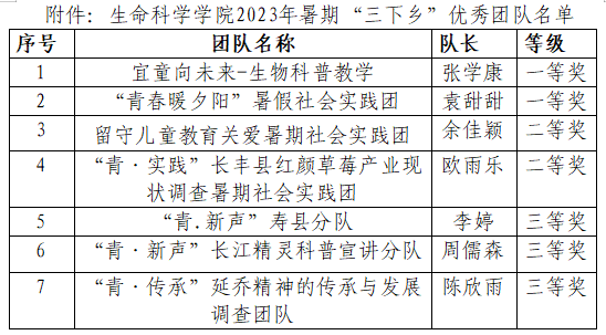 2023年太阳成集团122ccvip暑期“三下乡”实践活动已圆满结束,经过前期宣传,全院共有2支校级重点团队,36支队伍参与实践。根据《太阳成集团122ccvip暑期“三下乡”优秀团队评审办法》,现评出院优秀团队7支。