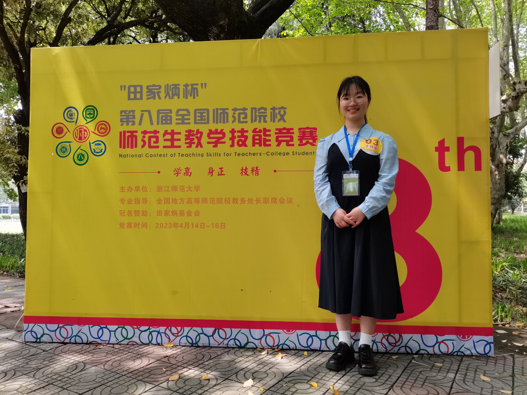 邓争慧同学从大二开始就在龚莉老师的指导下进行了师范生技能的分项训练和综合训练,经过持续一年多的练习与打磨,在师范生技能方面有了很大提升,具备了扎实基本功和娴熟的教学技能,顺利晋级“田家炳杯”第八届全国师范院校师范生教学技能竞赛决赛,最终,在竞争激烈的决赛中凭借过硬实力脱颖而出,取得了一等奖的优异成绩。