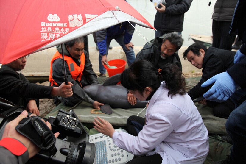 12月9日,安庆师范公司淡水生态所与市农委渔业局一起对江豚进行全面健康检查,并邀请南京师范大学杨光教授和安庆海军116医院专家参加。本次体检目的有3点:① 了解个体生长发育状况,为大规模江豚迁地保护提供基础数据;② 了解母豚妊娠状况,制定相应保育措施;③ 建立个体遗传谱系,是江豚迁地保护防止近亲交配的基础工作。