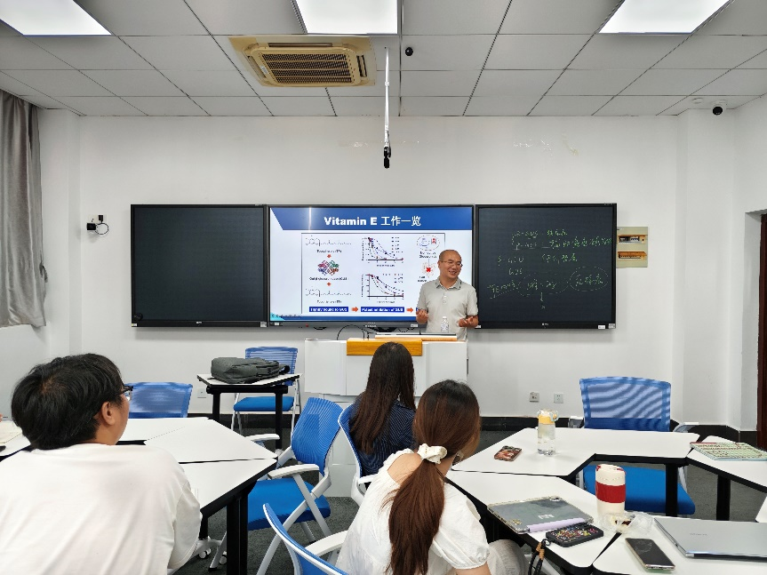朱亮亮系统阐述了β-葡萄糖醛酸糖苷酶的功能、抑制剂的应用背景、常用开发方法以及该领域的研究现状,重点介绍了其团队近期取得的最新研究成果(J Enzyme Inhib Med Chem, 2025,40, 2501041; J Agric Food Chem, 2025,73,30,18774-18782)。通过具体案例,朱亮亮生动展示了天然抑制剂的发现过程,鼓励同学们积极学习与掌握前沿技术,打破思维定式,注重多学科技术的融会贯通。