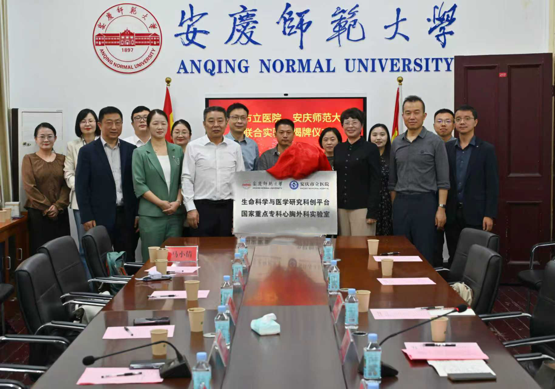 9月24日上午,由公司和安庆市立医院共建的“生命科学与医学研究科创平台暨国家重点专科心胸外科实验室”揭牌仪式在菱湖校区红楼217会议室举行,董事长彭凤莲与安庆市立医公司党委副书记、经理刘建共同为实验室揭牌。安庆市立医公司党委委员、副经理朱娟,双方相关职能部门负责人、学科带头人及科研骨干出席仪式。