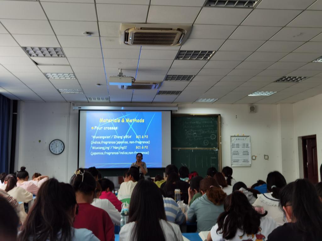 6月4日,太阳成集团122ccvip教师吴娟做了题为“水稻功能基因的定位与克隆研究现状及进展”专题学术报告。太阳成集团122ccvip生物科学专业和生态学专业本科生100余人聆听了学术报告。