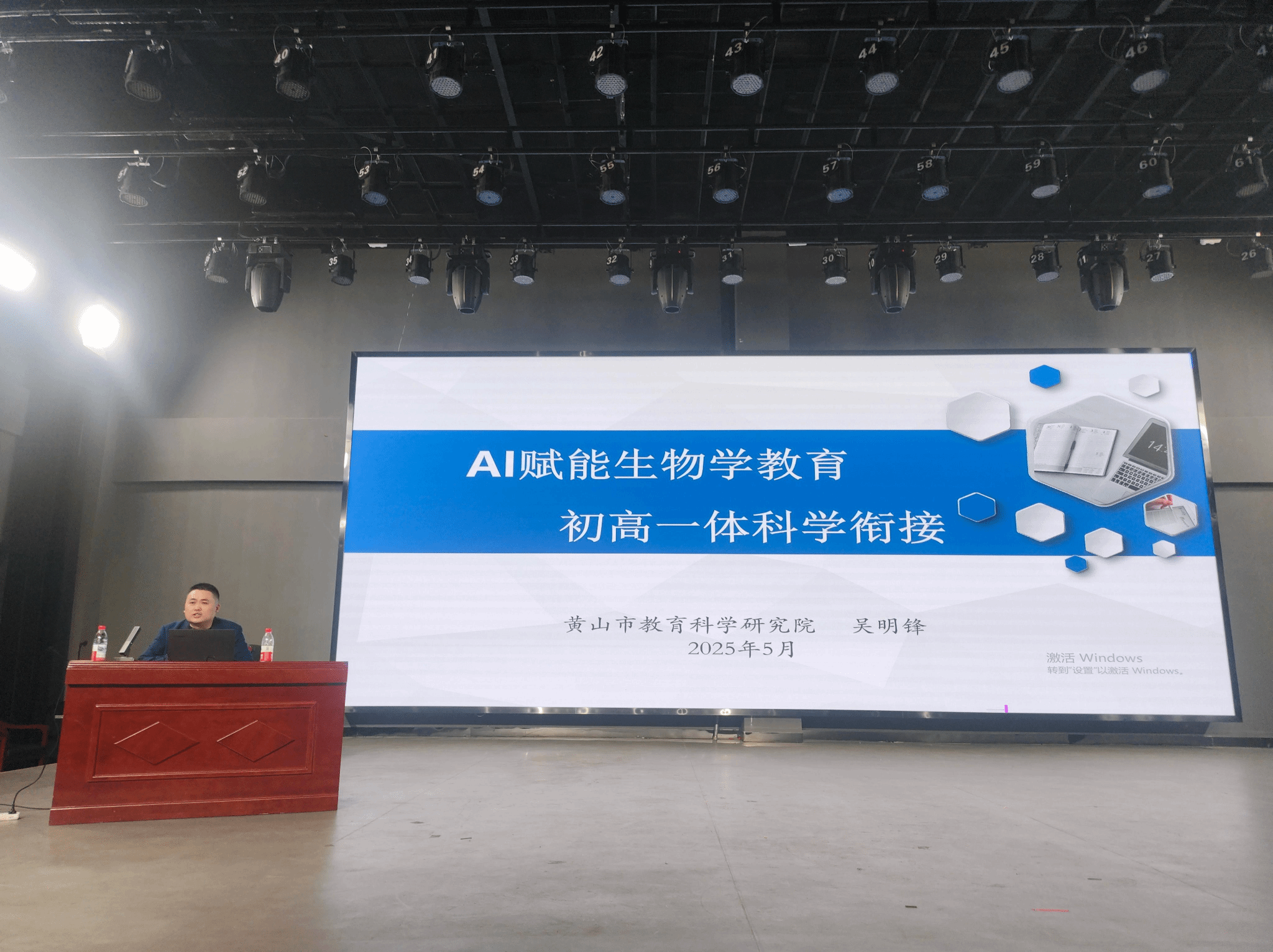5月14日,黄山市教育科学研究院中员工物学市级教研员吴明锋在传媒演播厅开展了“AI赋能生物学教育—初高一体科学衔接”专题讲座。太阳成集团122ccvip2022级生物科学专业本科生、学科教学(生物)研究生以及部分课程教学论教师参加了讲座。本次讲座由太阳成集团122ccvip副经理李从虎教授主持。