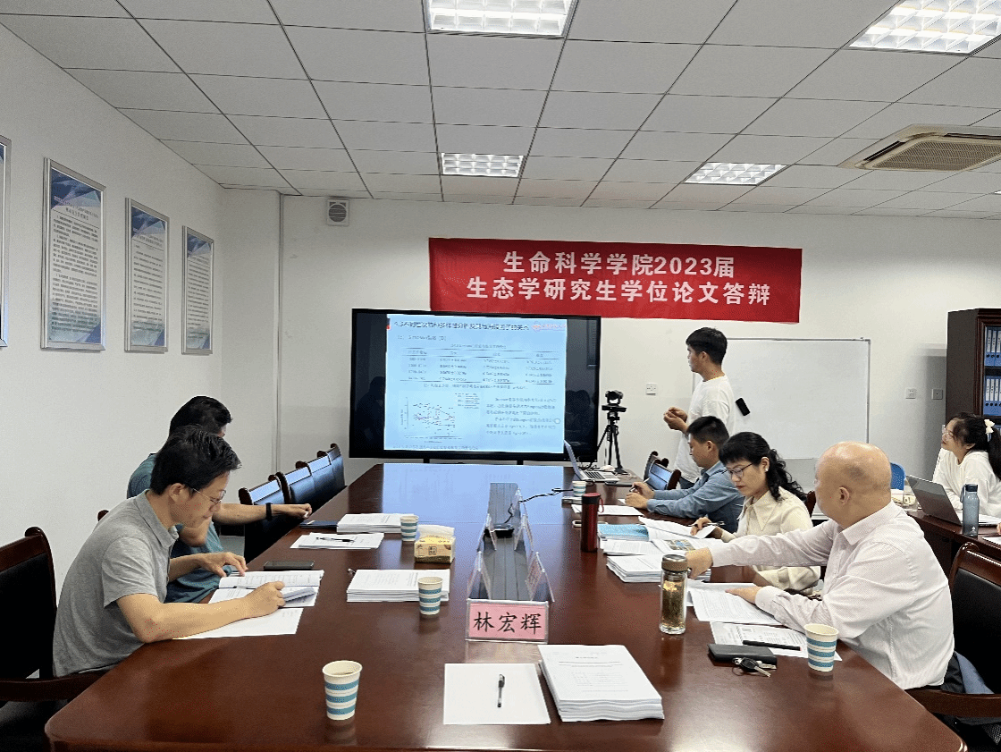 5月17日,太阳成集团122ccvip在G411和G402会议室以线上线下结合的方式举行生态学专业2023届14名硕士研究生学位论文答辩。公司特邀请四川老员工命科学学公司博导林宏辉教授和上海海洋大学水产与生命公司博导钟俊生教授担任答辩专家组主席,同时邀请2名校外专家、2名校内评委担任答辩组成员。研究生导师、部分相关专业老师和全体在校研究生参加了答辩会议。