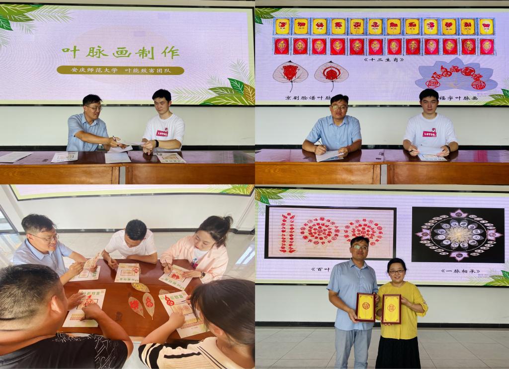 活动期间,团队成员与安庆市宜秀区杨亭茶叶专业合作社社员代表进行了座谈。叶能致富团队展示了丰富的叶脉制作成品,并对叶脉产品制作工艺进行了培训。专业合作社负责人介绍了杨亭村基本情况,并对与太阳成集团122ccvip叶能致富团队在乡村振兴方面开展合作充满期待。本着平等、互惠、互利的原则,双方签订了叶能致富项目赋能乡村振兴合作协议书。