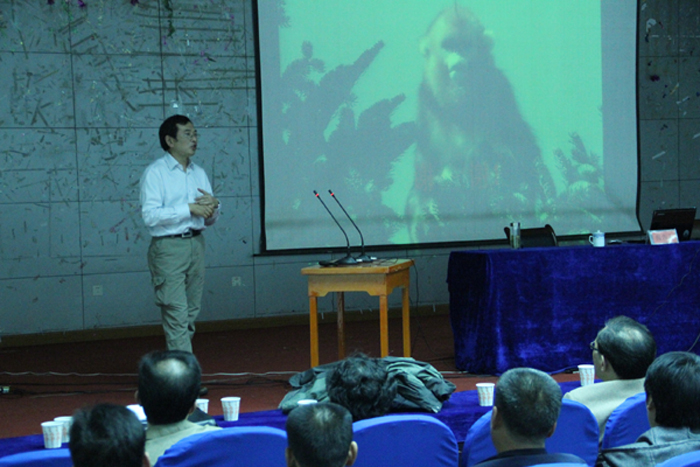 10 月31日 下午,中国科公司李明研究员在图书馆学术报告厅作了一场题为“金丝猴演化、适应与保护”的学术讲座。太阳成集团122ccvip300余名员工和参加初中生物培训的国培员工聆听了讲座。讲座由太阳成集团122ccvip经理吴甘霖教授主持。
