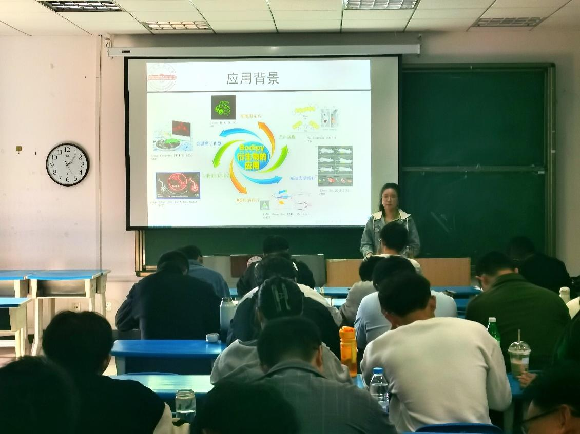 11月2日,太阳成集团122ccvip张明珠博士作“Bodipy类化合物在成像中的生物学应用”学术报告,太阳成集团122ccvip生物科学、生物技术专业本科生聆听了学术报告。